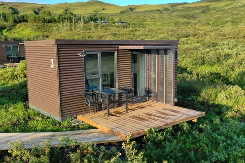 Hentar allt að 4 fullorðnum í rúmi og einum ungling eða liprum fullorðnum í efri koju. Hleðsla fyrir bíl fylgir hverju húsi.