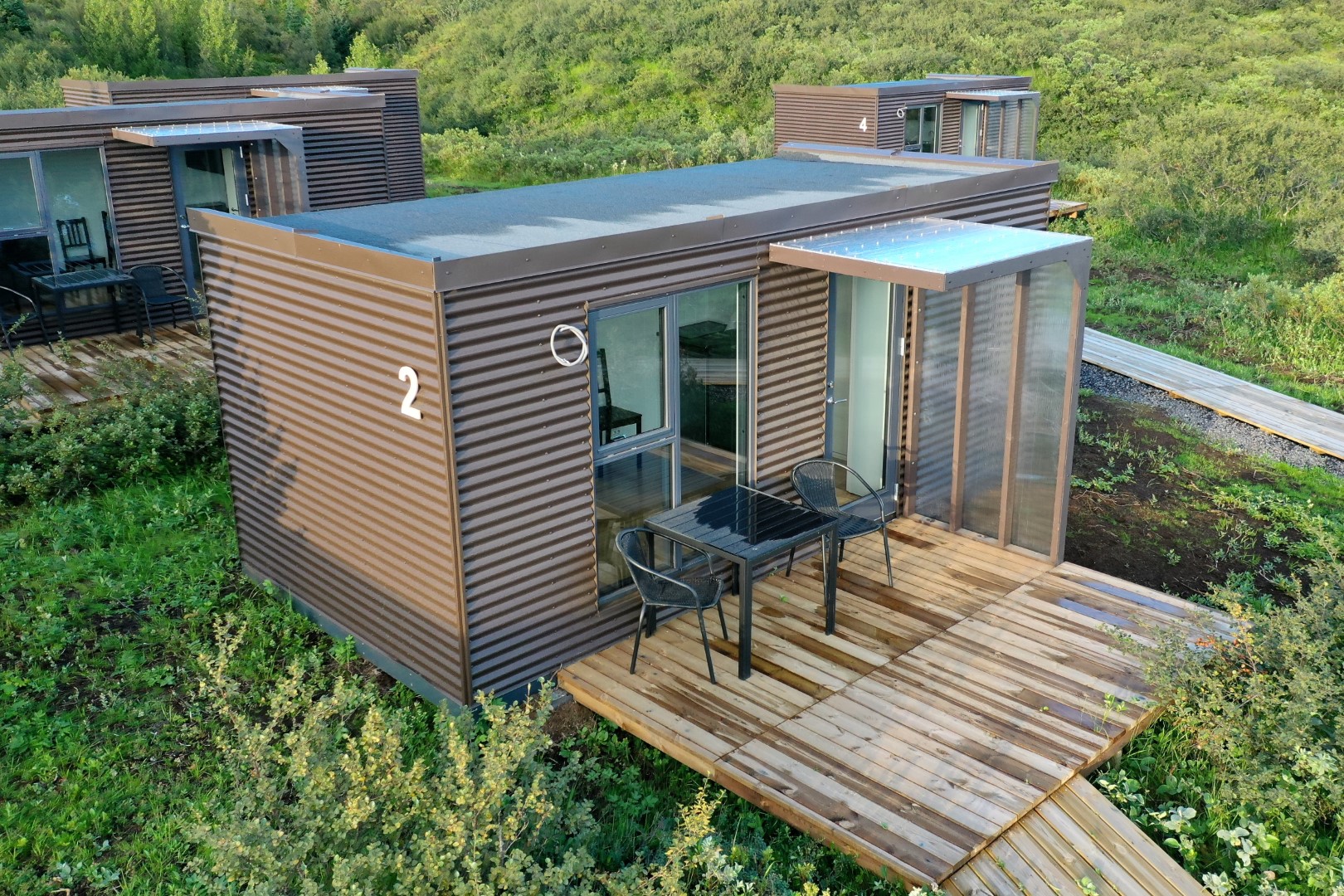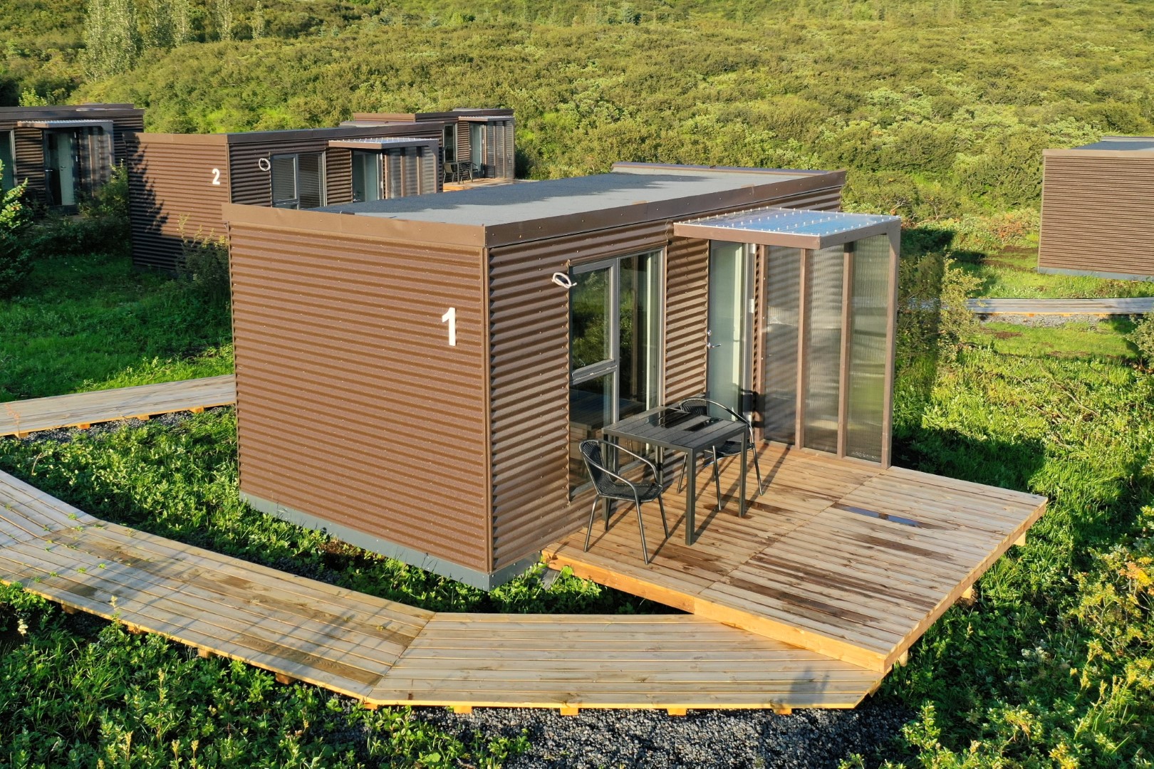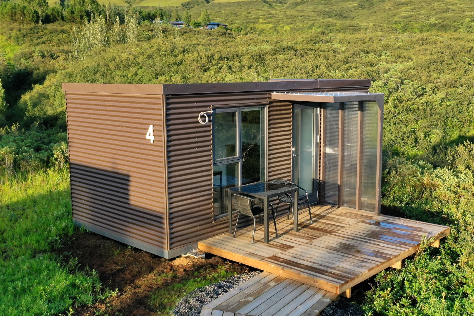 Eitt herbergi og bað. Fullbúið eldhús, aðgangur að þvottahúsi með þvottavélum og þurrkurum. Hleðsla fyrir bíl fylgir hverju húsi.