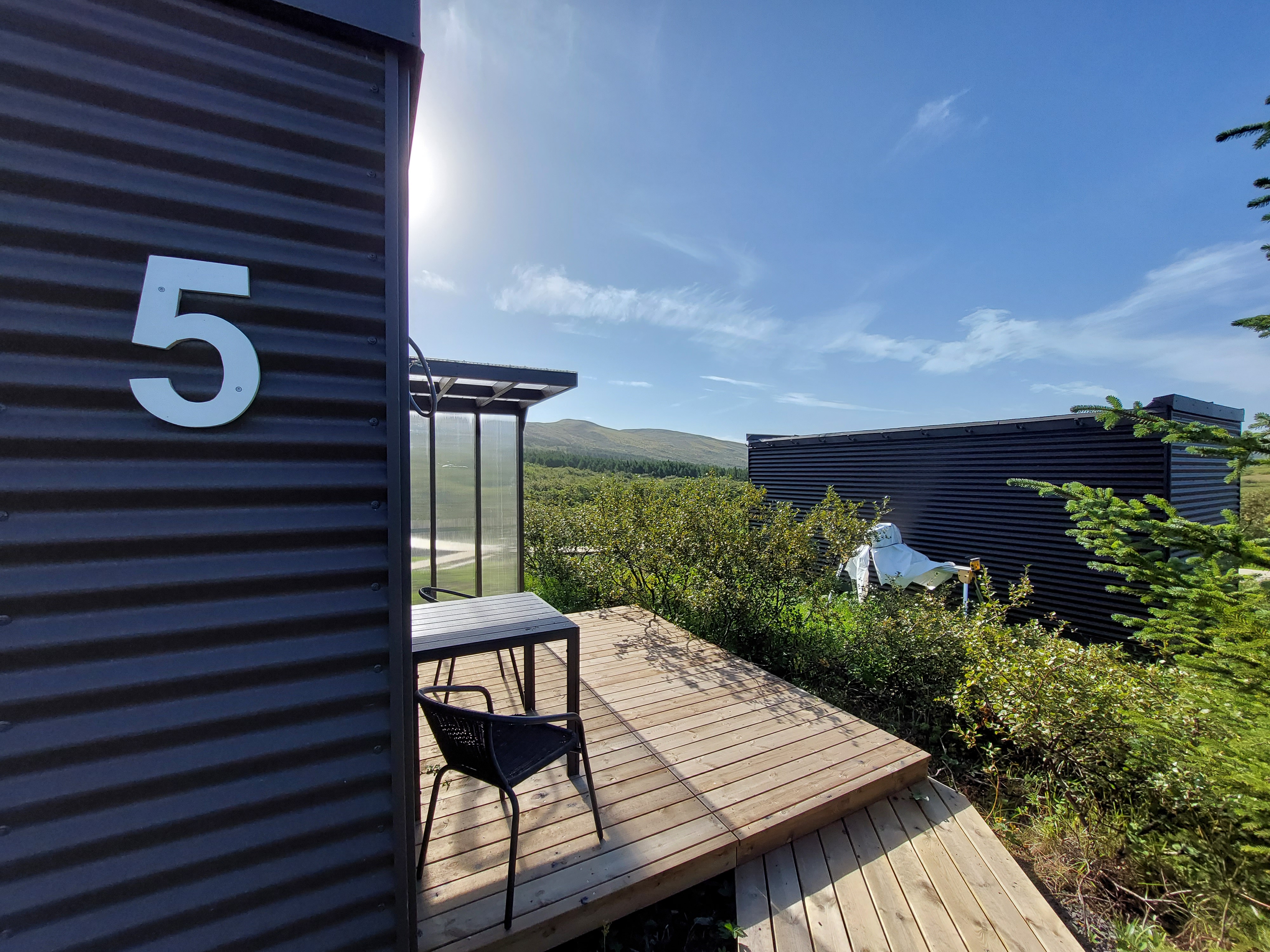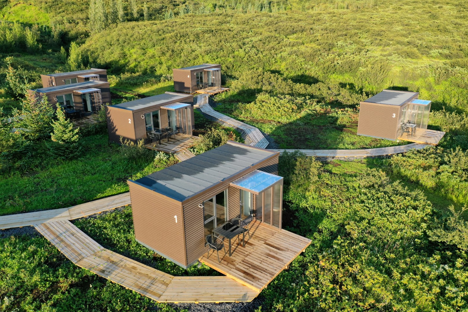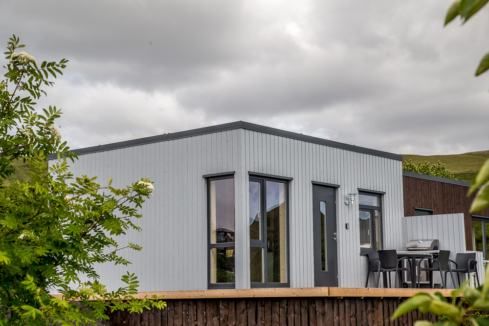 Eitt herbergi og bað. Fullbúið eldhús, aðgangur að þvottahúsi með þvottavélum og þurrkurum. Hleðsla fyrir bíl fylgir hverju húsi.