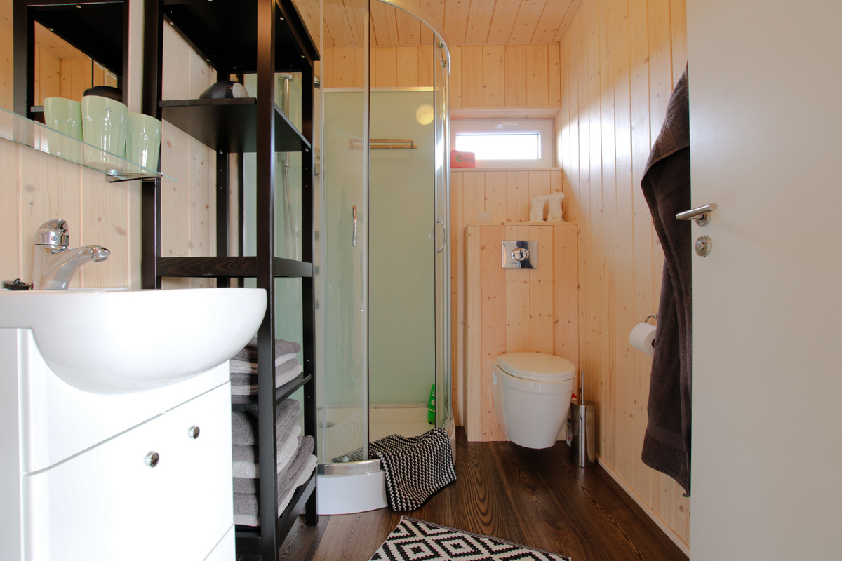 Baðherbergi: Sturta, klósett, handlaug, handsápa klósettpappír.