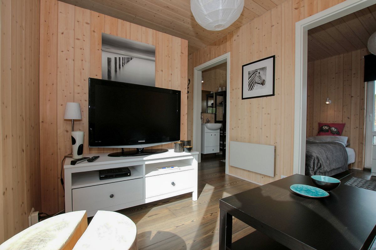 Eldhús: Ísskápur/frystir, fjórföld span keramikhella, örbylgjuofn, kaffivél, brauðrist, hraðsuðuketil og öll önnur nauðsynleg eldhúsáhöld ásamt uppþvottalegi, grunn kryddum, kaffipokum, matarolíu, neskaffi, salti og sykri. Borðstofuborð með sæti fyrir 4-5